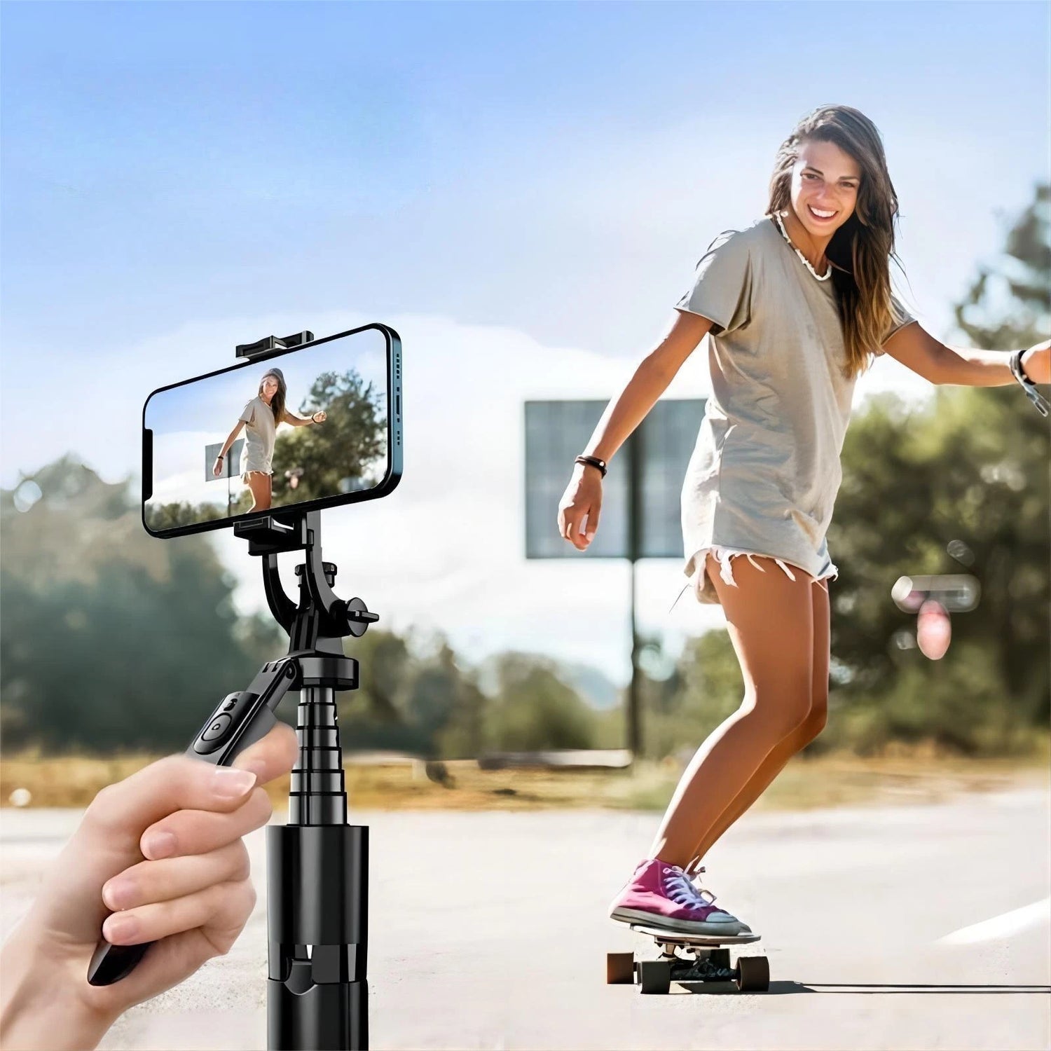 It features a telescopic selfie stick extending up to 155cm and a 360° rotating balance handle for smooth, stable shots.