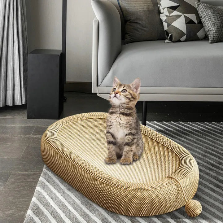 Scratcher, lounge bed, and play ball combined — keeps your cat entertained for hours.