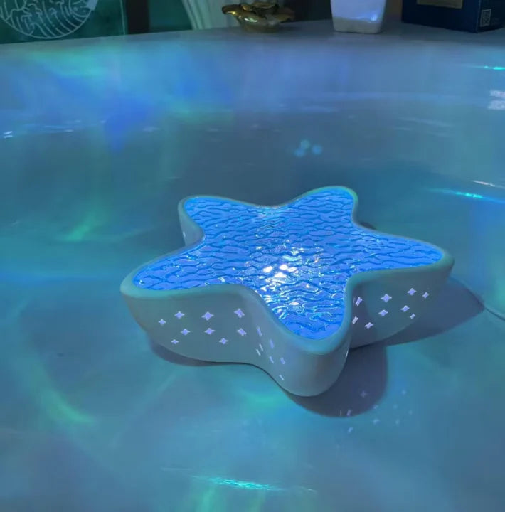 The Ocean Star is a light projector that imitates the movement of ocean waves. When turned on, it diffuses a soft, soothing light, creating a water reflection effect on the walls and ceiling. Perfect for relaxing, bathing, or falling asleep.
